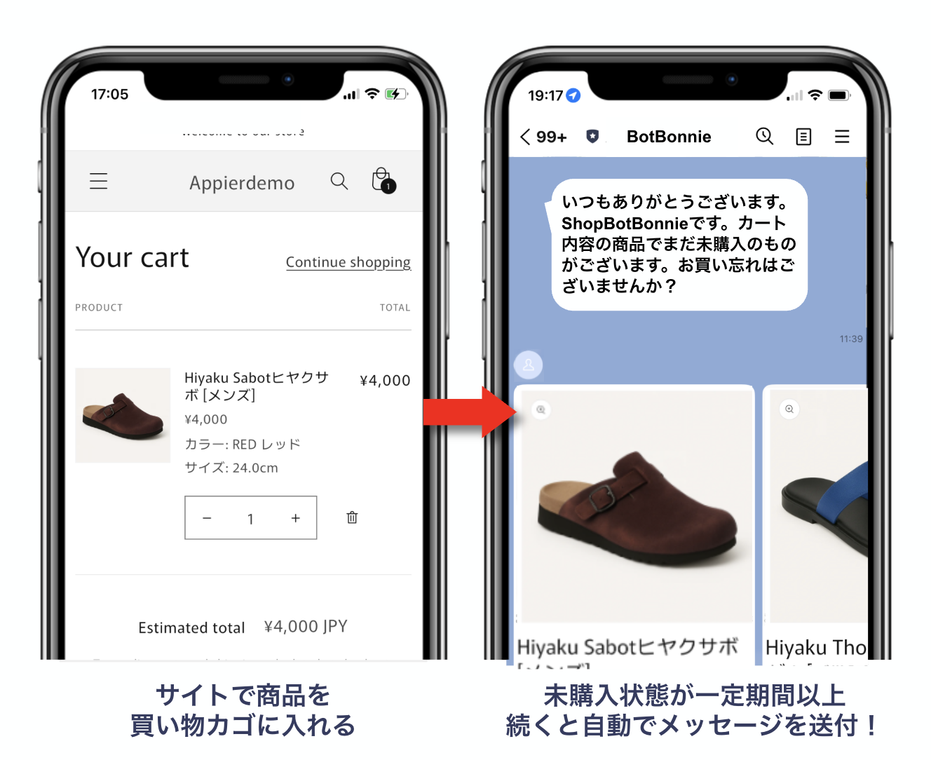 今回は、「LINEでのカゴ落ちリマインダー配信」についてご紹介します。商品のカートイン後に未購入のままのユーザーへ自動でリマインドメッセージを送信して、CVを増やすことができます。期待できる効果:「サイト売上が平均2%成長!」